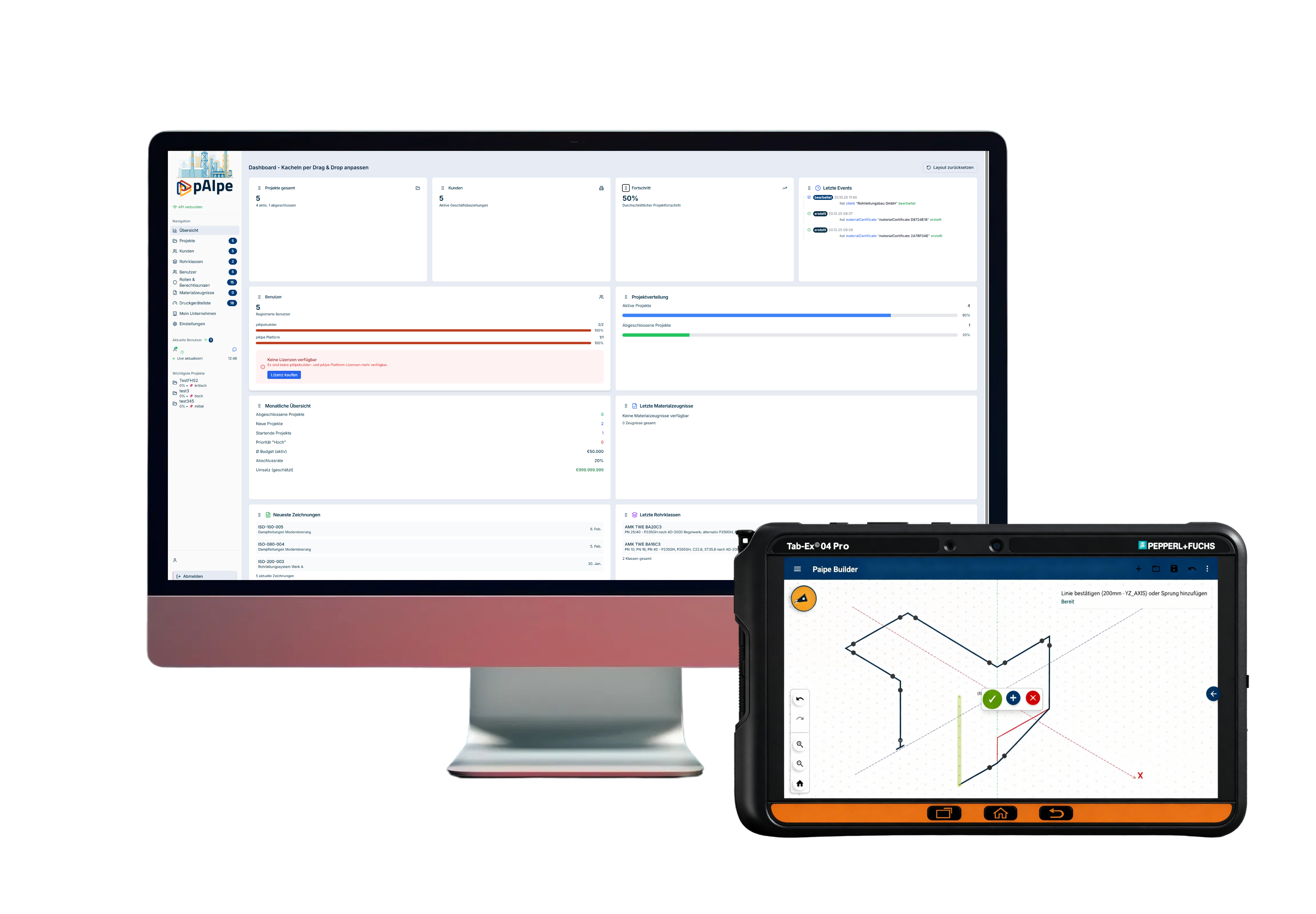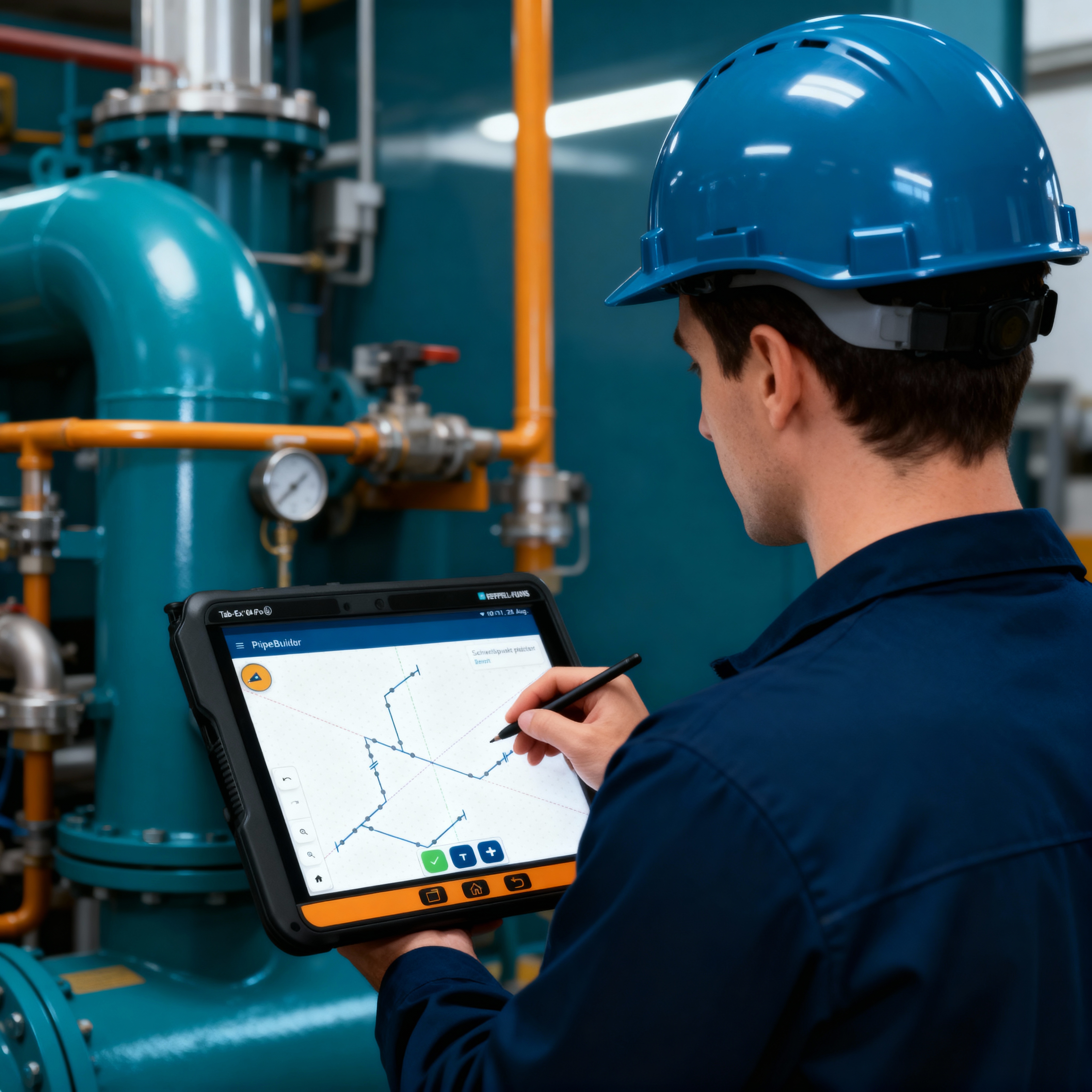 Isometrie mit der pAIpebuilder APP erstellen. Die Daten werden automatisch mit der Plattform synchronisiert