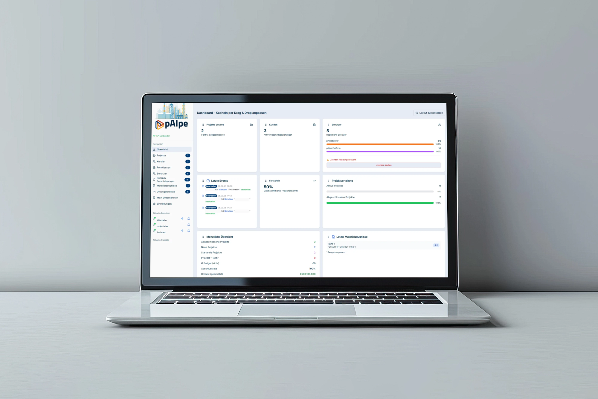 Kunden, Ansprechpartner und Projekte einfach online über pAIpe oder die APP pAIpebuilder anlegen
